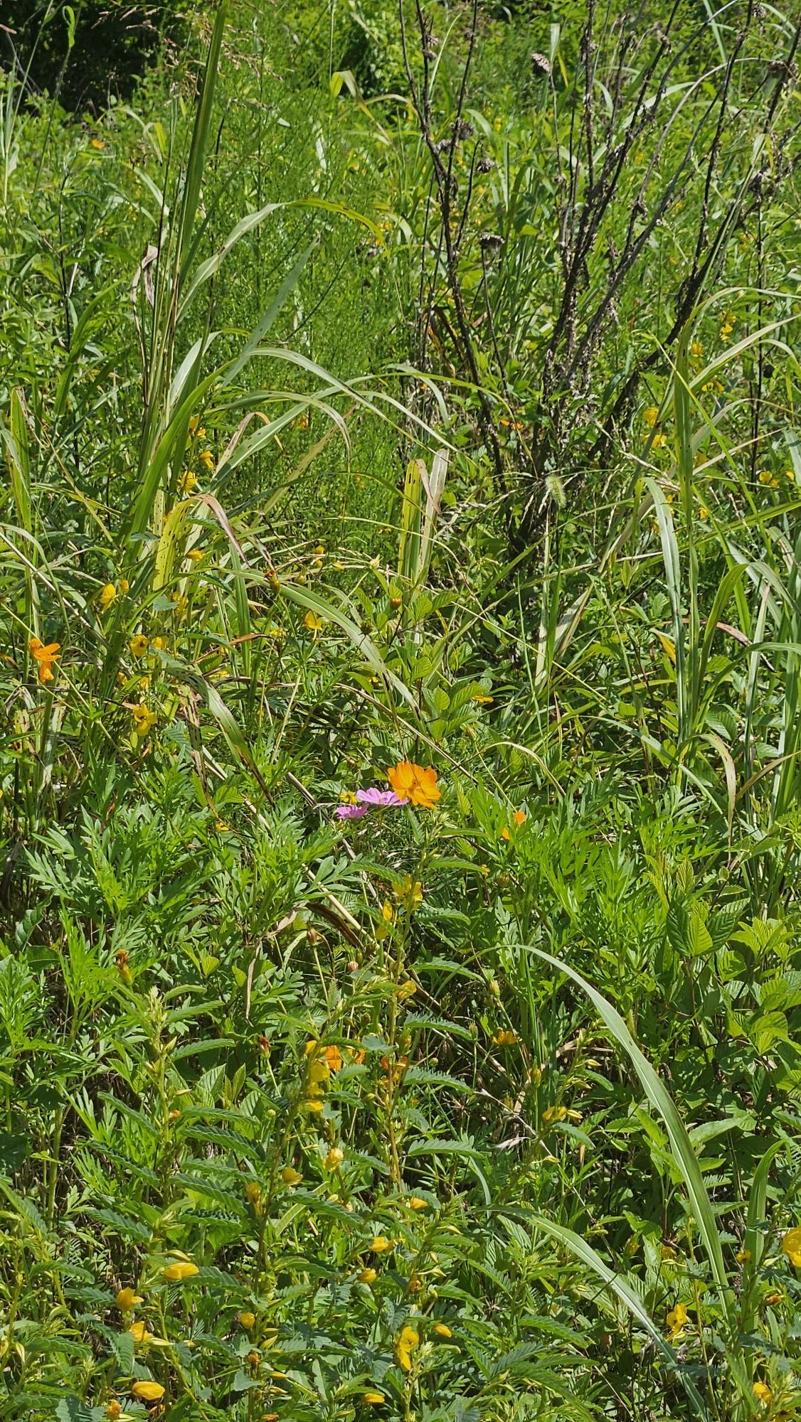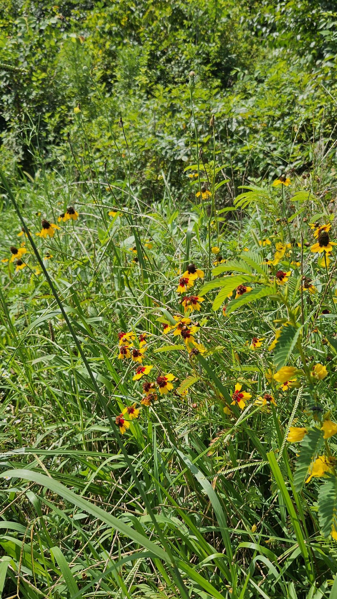 The wildflowers we planted at Smith Park have come up nicely. A recent visit to the site revealed a lot of pink cosmos, orange sulphur cosmos, plains coreopsis, partridge pea, clasping coneflower, and several other varieties of native wildflowers that were not present last year.